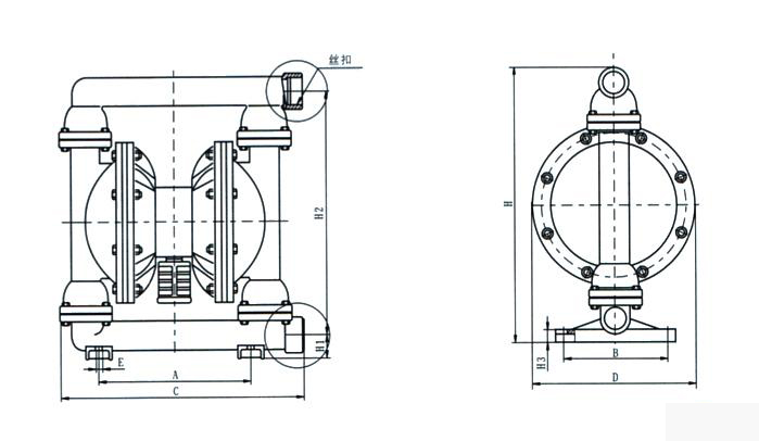 型號(hào) | A | B | C | D | E | H1 | H | 絲扣 | 備注 |