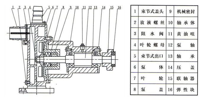 本泵具有結(jié)構(gòu)緊湊、操作簡便、體積小、重量輕、性能穩(wěn)定、不用底閥、起動是不需引灌等特點。該泵更換3~4個零件后便可用于輸送濃漿、酸、堿、鹽等液體。