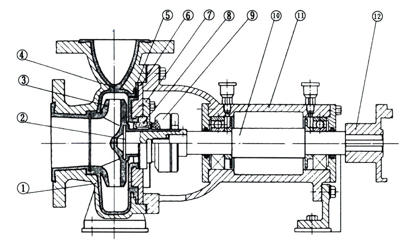 IHF為單級(jí)單吸式氟塑料合金化工離心泵,該泵是結(jié)合非金屬泵的加工工藝設(shè)計(jì)生產(chǎn)。泵體采用金屬外殼內(nèi)襯聚全氟乙丙烯(F46),泵蓋、葉輪和軸套均用金屬嵌件外包氟塑料整體燒結(jié)壓制成型,軸封采用四氟填充材料,進(jìn)出口均采用鑄鋼體加固。